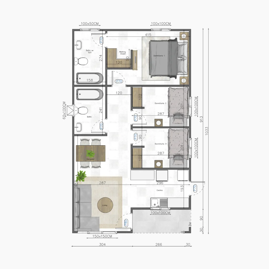 61 metros cuadrados | 3 Dormitorios | 2 Baños