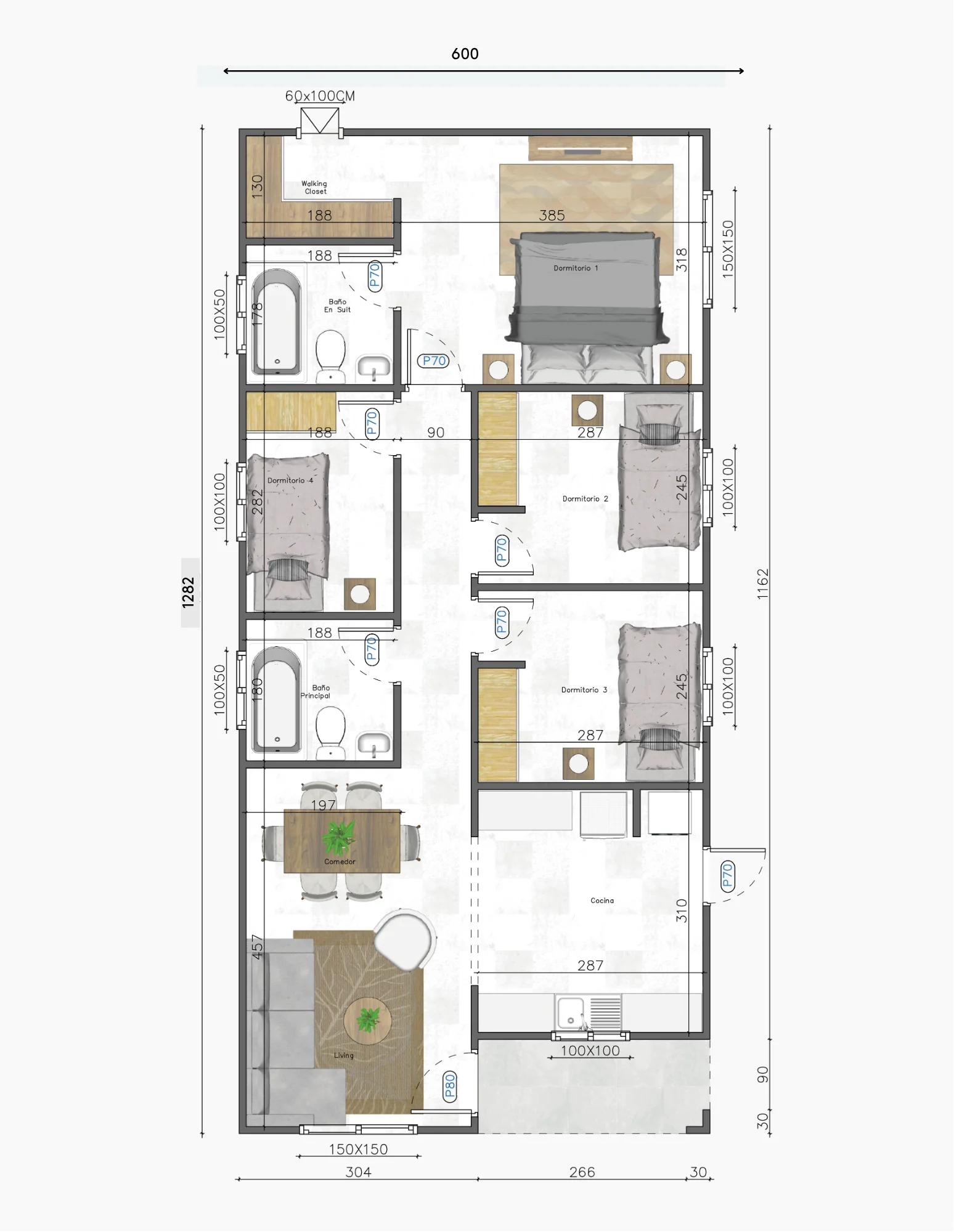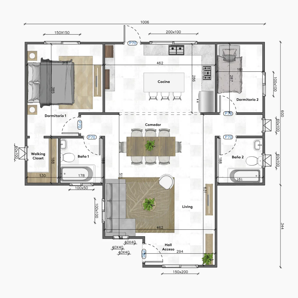 74 metros cuadrados | 2 Dormitorios | 2 Baños